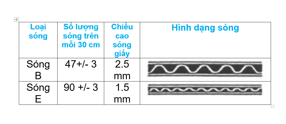 Lớp sóng E được hình thành từ loại giấy xeo mềm, thường có màu trắng đục hoặc nâu. Lớp sóng E sẽ có định lượng thấp hơn so với các loại sóng khác.