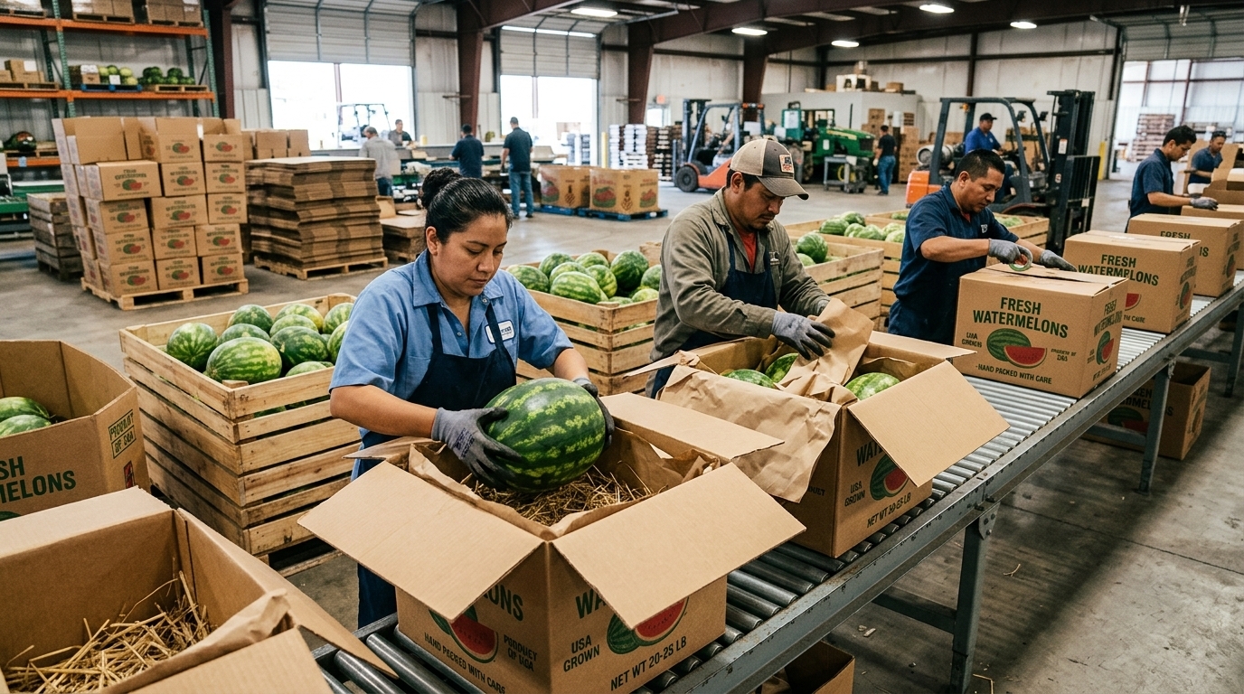 Quy trình đóng gói dưa hấu bằng thùng carton